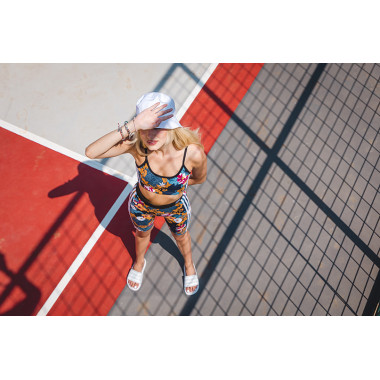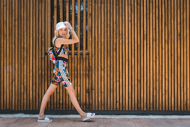 Ovom prilikom, Adidas Adilette W papuče sam kombinovala sa neodovljivim, šarenim Adidas modelom biciklističkih i sa laganim topićem. Ovaj look je apsolutni favorit ove sezone – urbano, ležerno i totalno cool, baš kao što ste i vi ovog ljeta.