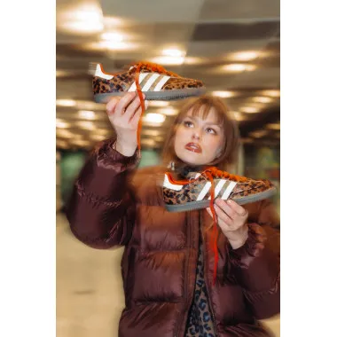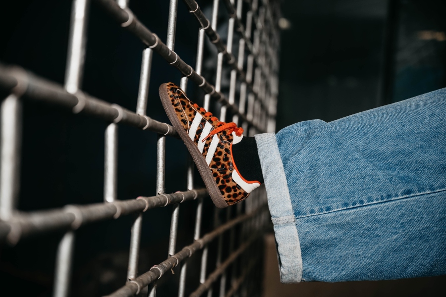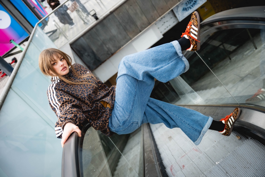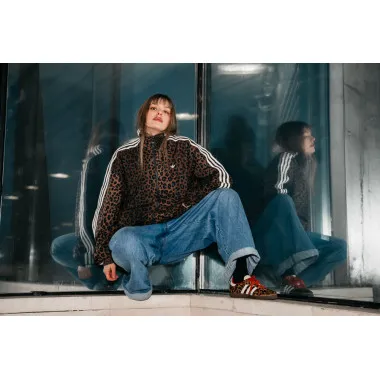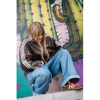 Dodajem upečatljivu jaknu – u ovom slučaju sa leopard printom – da outfit dobije karakter i dozu drskosti. Ispod ide jednostavan top ili džemper. Bez komplikovanja. U toj kombinaciji, Samba OG su savršen balans jačim komadima.
