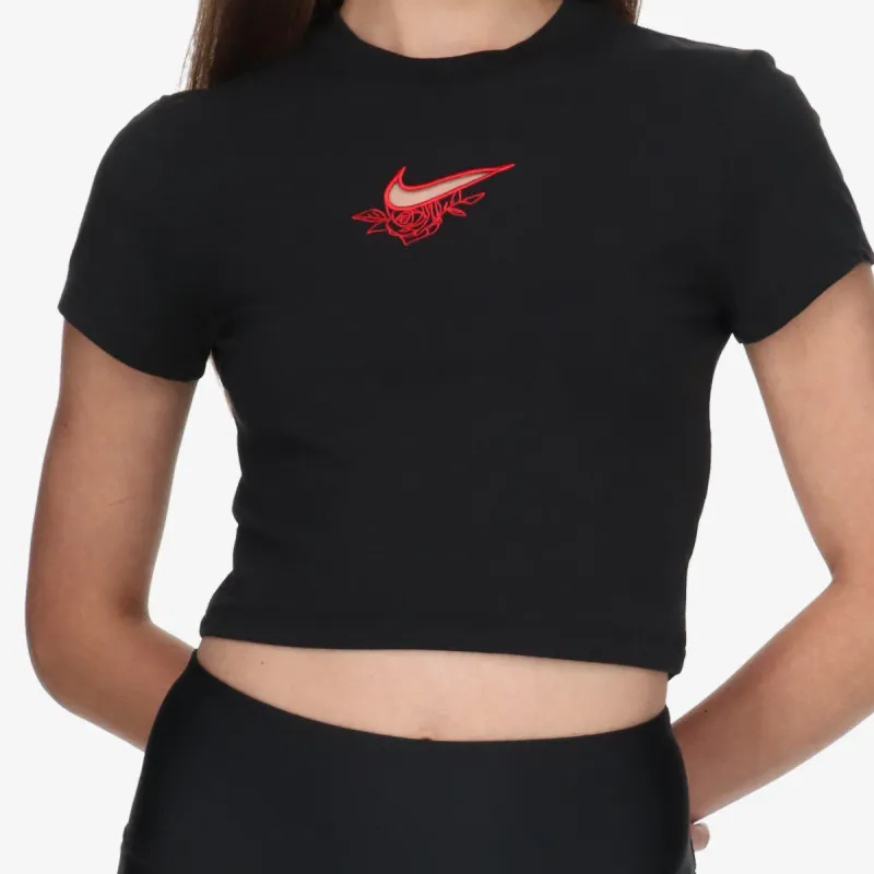Jednostavna, ali elegantna, ova Nike Sportswear kratka ženska majica srednjeg kroja ima mali Swoosh otvor okružen izvezenim cvjetićima.